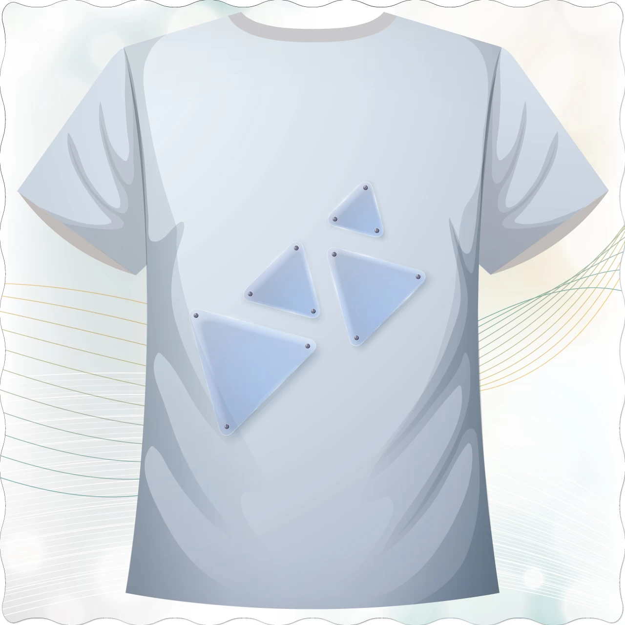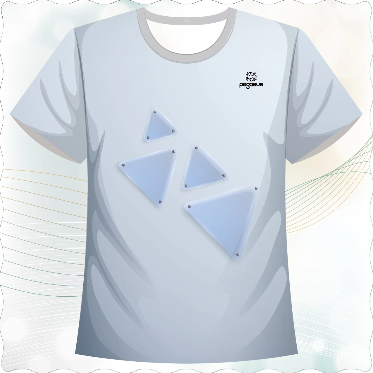 「冰晶三角款」,以淡雅的冰藍色為底,透過立體感的幾何三角設計,展現出如同冰晶般的清透與層次感。三角形排列宛如光影的碎片,簡潔卻充滿未來感,讓整體造型兼具科技感與時尚氣息。前後呼應的設計,讓視覺更有連續性,穿著時不僅能呈現清爽氛圍,也帶有俐落、低調卻耐看的質感。