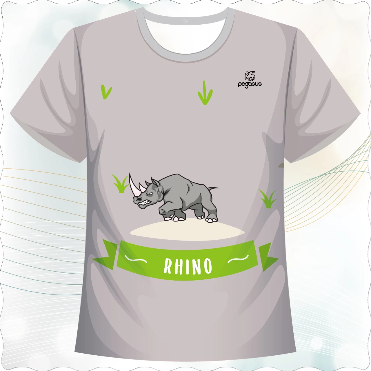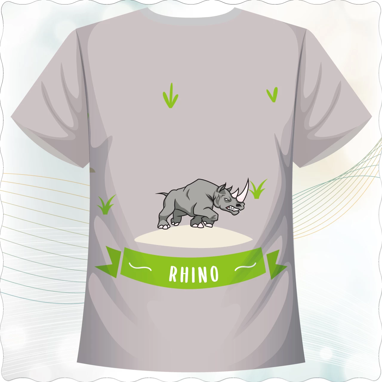 「原野之角款」,以強壯有力的犀牛作為主視覺設計,象徵堅毅與守護自然的精神。衣身以沉穩灰色作為底色,搭配綠色草地元素,傳遞出野性與自然的平衡之美。正反兩面皆有犀牛圖案,營造出強烈的一體視覺感,並搭配「RHINO」字樣綠色飾帶,增添設計層次。