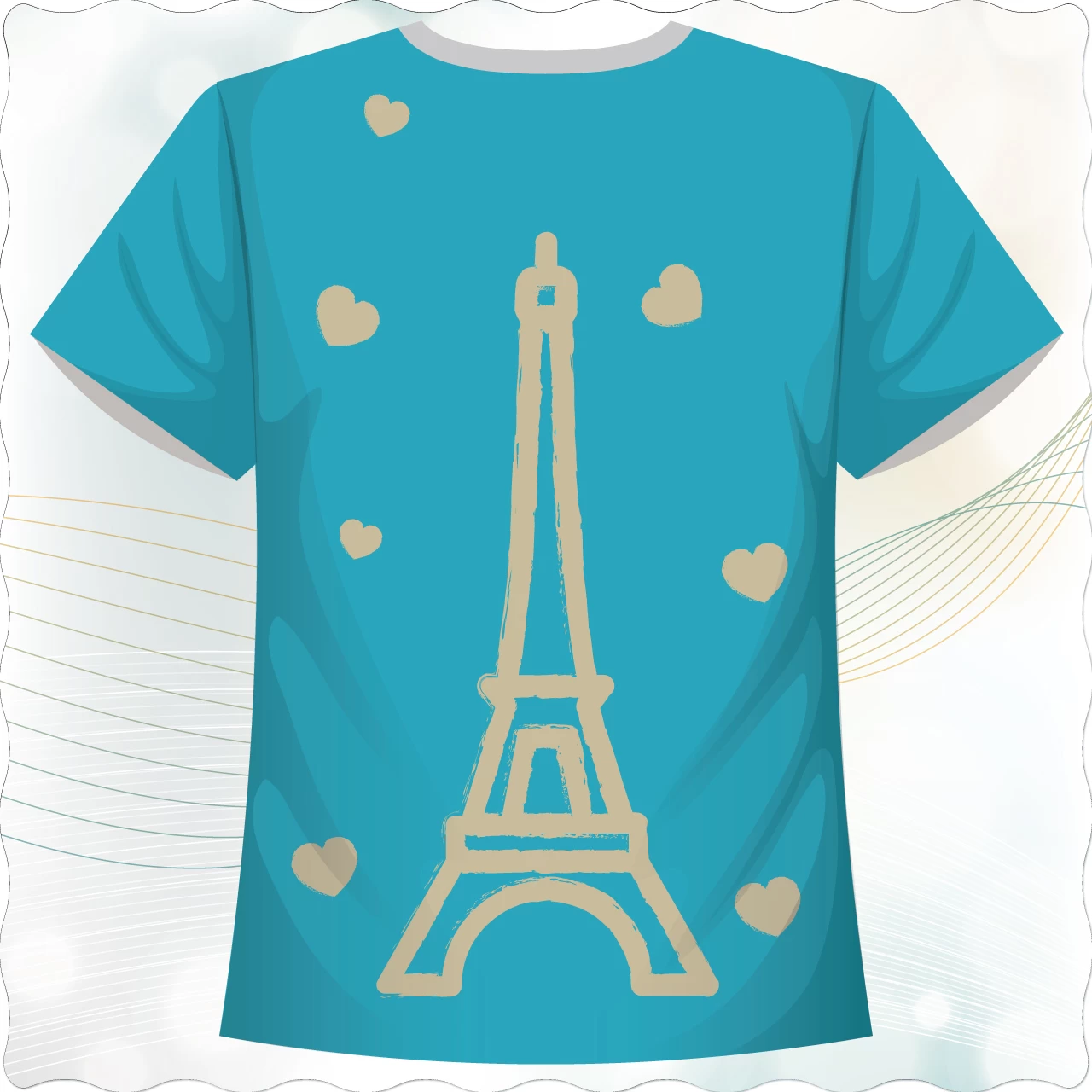 「巴黎心語款」,以 蒂芬尼藍底色 搭配 米金色的艾菲爾鐵塔 為主要設計元素,整體散佈著愛心符號,營造出濃厚的浪漫氛圍。艾菲爾鐵塔的簡筆刷感線條,不僅展現出歐洲藝術的優雅感,也讓整體設計多了一份輕鬆與時尚。前後圖案呼應,將艾菲爾鐵塔完整呈現,搭配溫潤的色彩組合,使整件衣服散發出巴黎街頭的浪漫氣息。此設計特別適合 情侶裝、旅行紀念服 或是 文青風日常穿搭,穿上它彷彿漫步在巴黎的午後時光,享受愛與自由的氛圍。