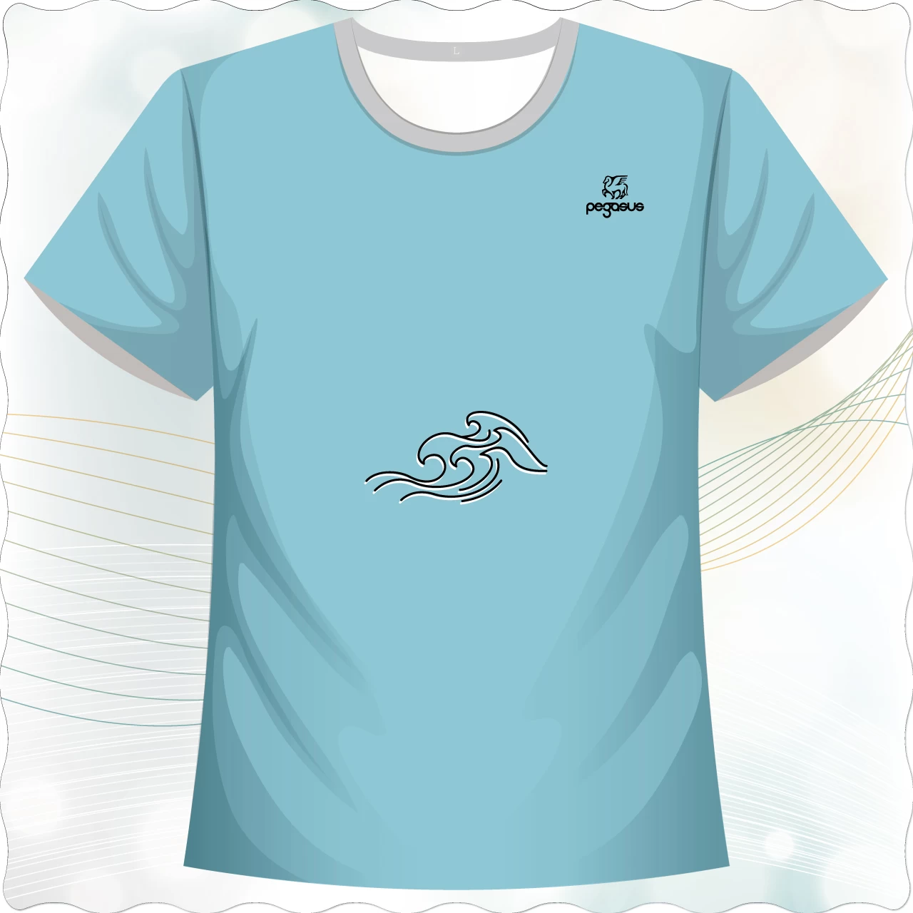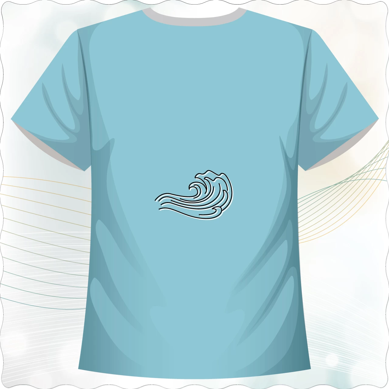 這款圓領T以清爽的淺藍色系為底色,象徵大海的寧靜與自由。正反兩面皆以線條風格的海浪圖騰作為主視覺,前後不同的浪形設計,傳遞出海洋持續變化卻不斷前行的力量。