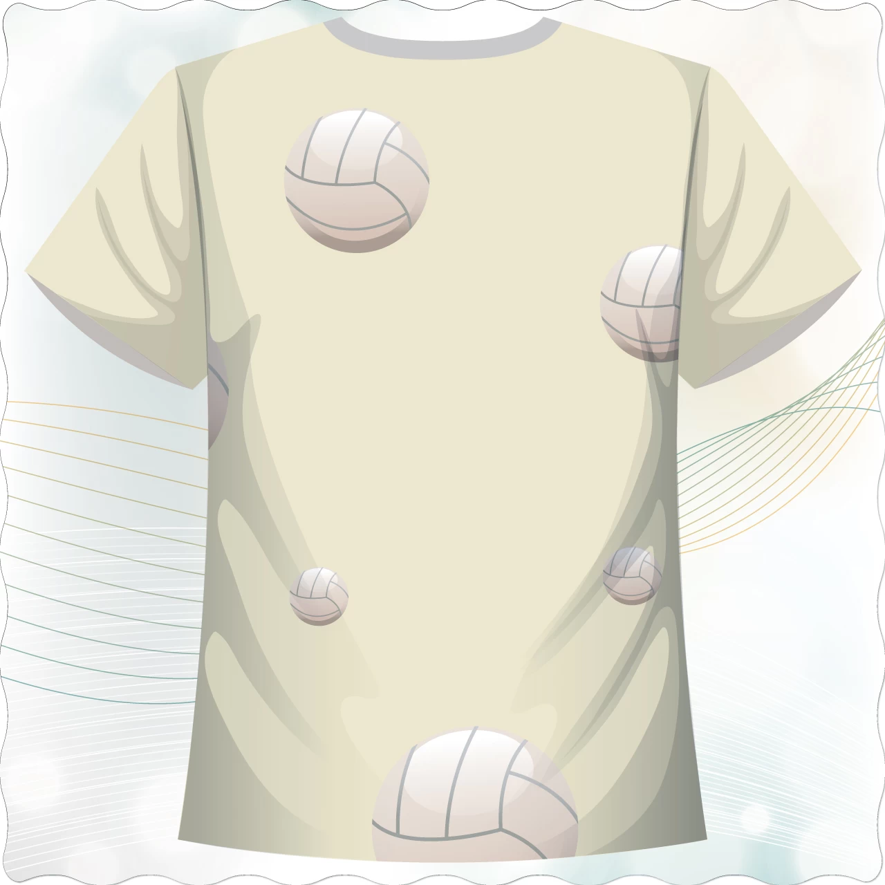 「熱血排球款」這件圓領T以 排球運動 為核心設計主題,整體以 淺米色底 搭配 立體感排球元素,營造出動感與躍動的氛圍。前幅以 「Volleyball」字樣結合多顆不同角度的排球插畫,展現運動的活力與熱情;背面則延續排球的排列設計,營造一種「比賽持續進行」的視覺效果。