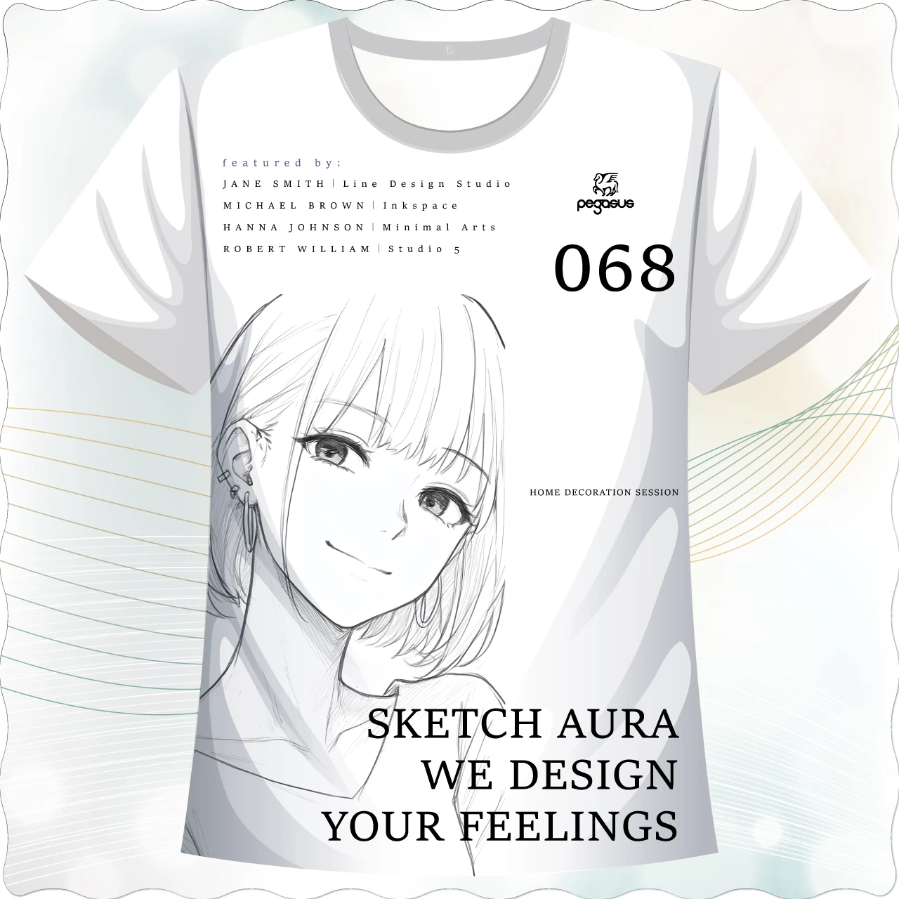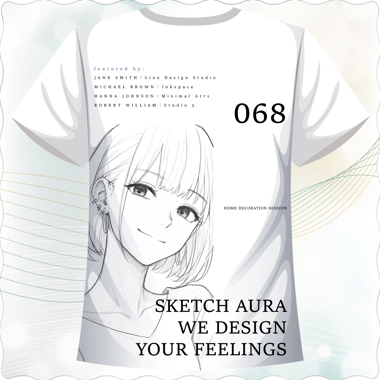 這款名為《素描氛圍 Sketch Aura》的圓領T,巧妙融合手繪感人物肖像與室內設計概念文字,營造出一種介於藝術與生活之間的靜謐氣質。